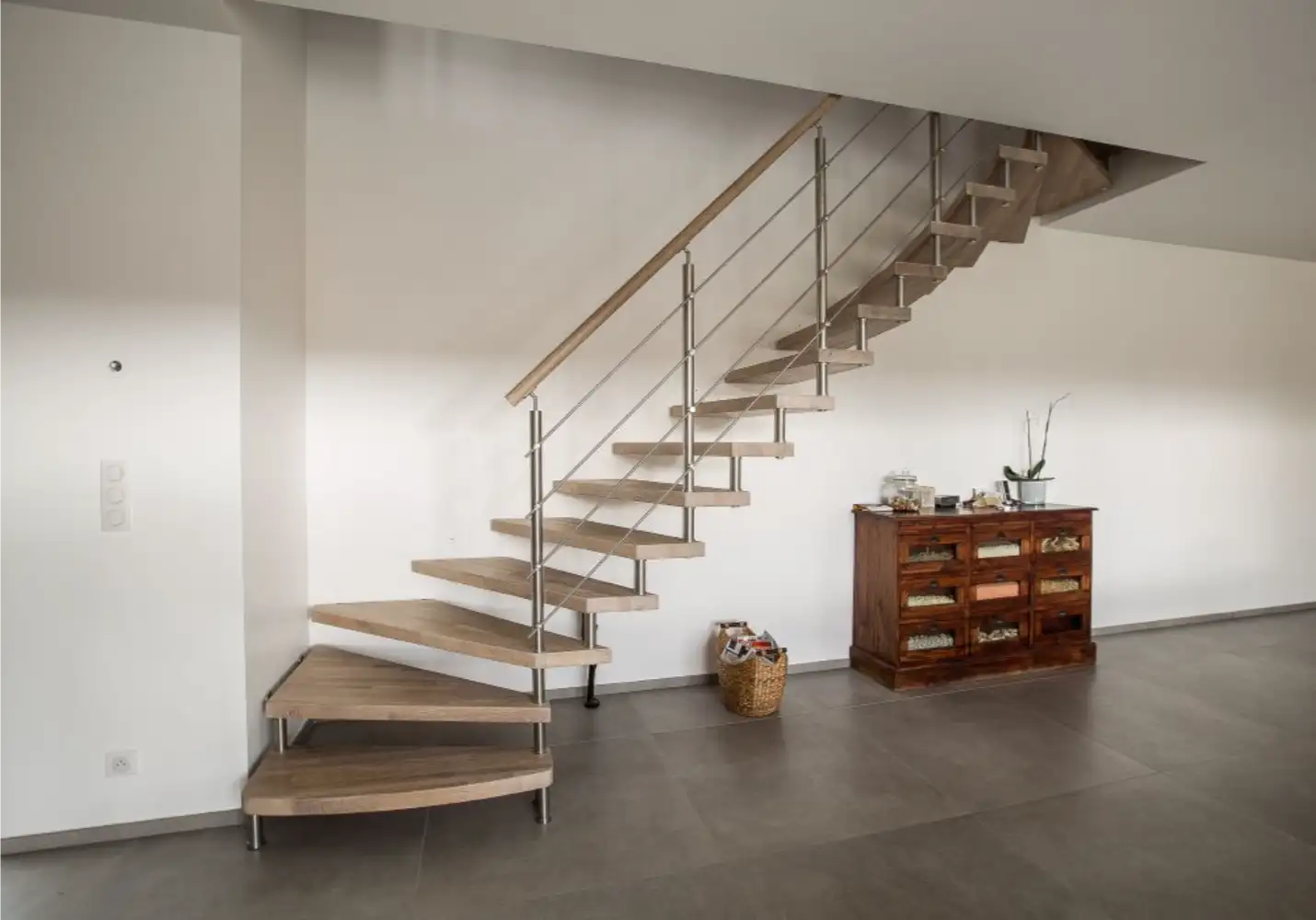 Avec son design contemporain, l’escalier LINEA offre un rendu esthétique remarquable qui s’intègre avec discrétion dans votre intérieur. L’harmonie parfaite entre marches et contremarches crée une ligne fluide et élégante, apportant une sensation d’équilibre visuel.
