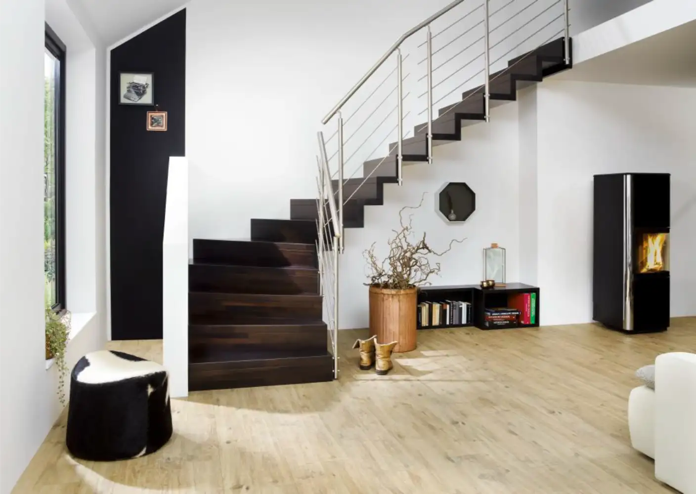 Grâce à son système ingénieux, l’escalier ÉPURA allie parfaitement sécurité et esthétique, pour un usage quotidien confortable. Avec son design unique, il devient un élément central qui attire le regard et donne du caractère à votre intérieur.