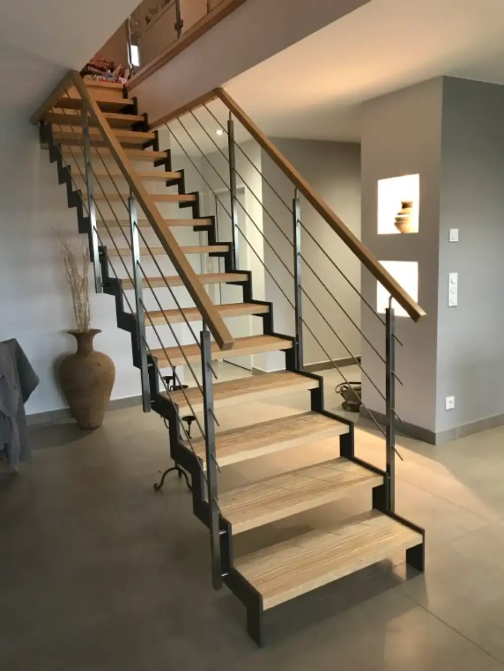 Avec ses lignes sobres et structurées, l’escalier LOFT crée une atmosphère à la fois chaleureuse et design, idéale pour sublimer les volumes et affirmer une identité forte. Véritable élément architectural, il transforme votre espace en lui donnant un style unique et intemporel.