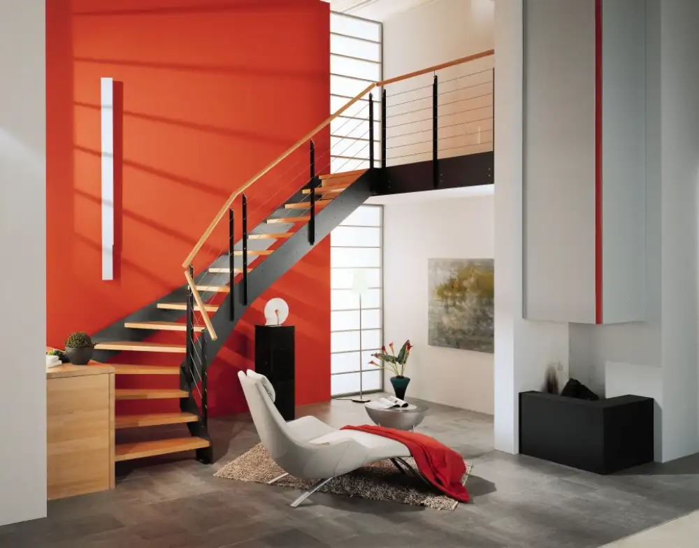 L’escalier FERRO affirme son caractère avec une alliance élégante entre métal et bois, redéfinissant les codes de l’élégance contemporaine. Son design sobre et structuré lui permet de s’intégrer naturellement dans tous les styles d’intérieur, du plus moderne au plus classique.
