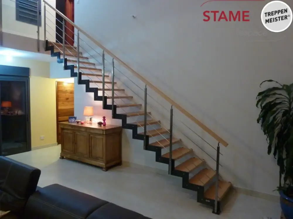 Avec sa sobriété chic, l’escalier FERRO apporte une touche de personnalité et de caractère à votre espace, tout en conservant une harmonie visuelle parfaite. Il devient ainsi un élément central, à la fois fonctionnel et esthétique, pensé pour sublimer votre intérieur.